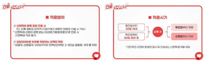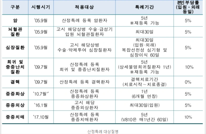 - 📅 적용 기간: 암 및 중증난치질환은 5년, 중증화상은 1년, 결핵은 2년 등 질환별로 적용 기간이 다릅니다.